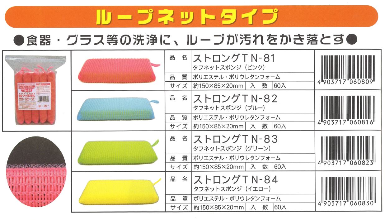ワコー ストロング TNシリーズは、プロユーザー向けに開発された高品質・高機能のスポンジタワシです。ナイロンループが汚れをかき落とすことができます。